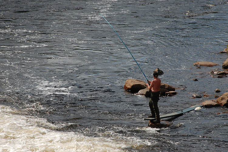 Denne karen gjorde ett kast i den smale renna under fossen. Så var det bare å vinsje inn.