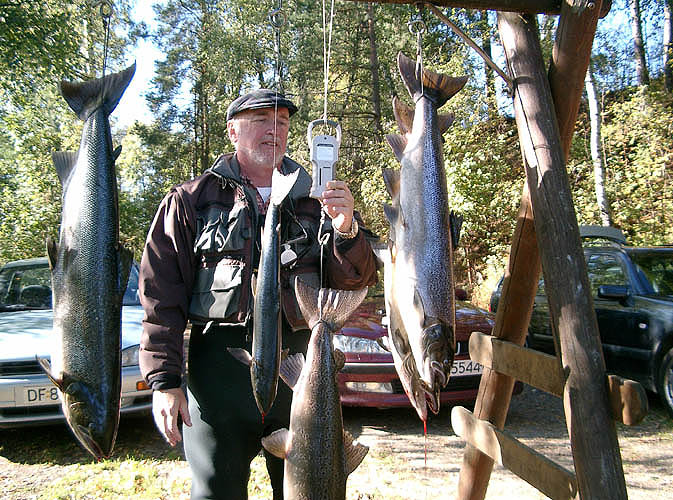 Einar Mathiesen veier fisk. Ennå er det tidlig på formiddagen...