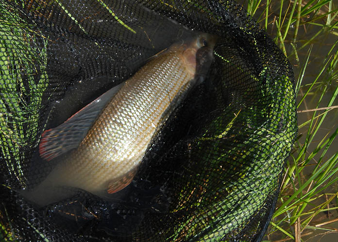 Vekta i håvskaftet viser 8 hekto. Det var dagens største.