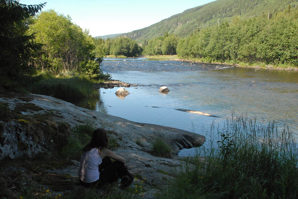 Ingrid slapper av i skyggen ved Sveinhaug.