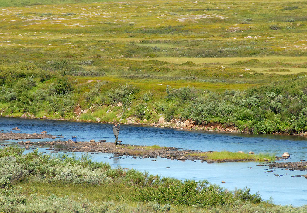 18-foteren bøyer seg såvidt. Lokalkjente Karl Kristiansen har fast fisk.