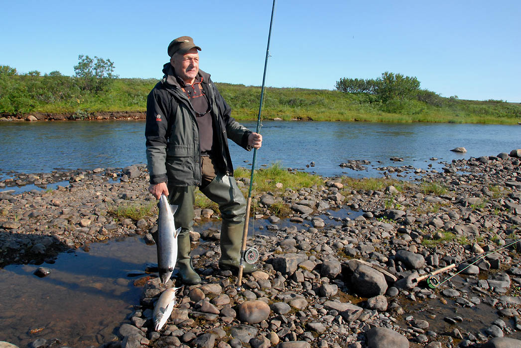 Karl Kristiansen har hatt en fin formiddag i elva.