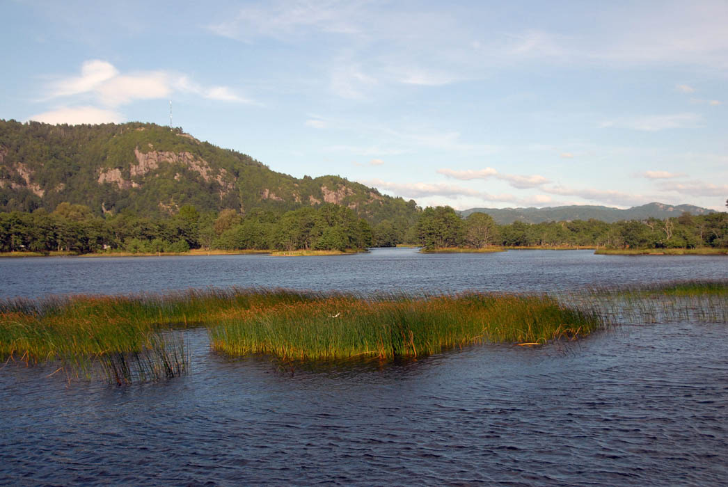 Aller nederst deler Lygna seg i mange løp mot Lyngdalsfjorden.