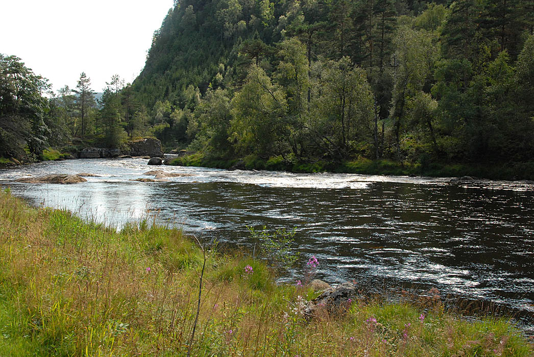 Nedenfor dette brekket er det en lang strekning med strie stryk og fossefall. Her får laksen endelig hvile.