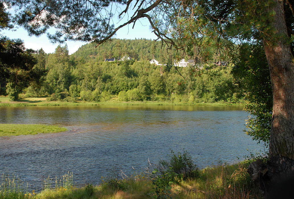 Nedenfor brua ved Fuglestveit deler elva seg i to løp.