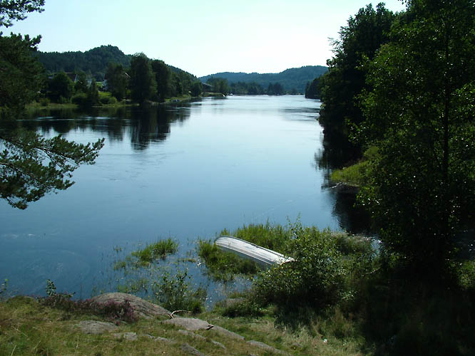 Nedenfor Holum renner Mandalselva som en stille flod.