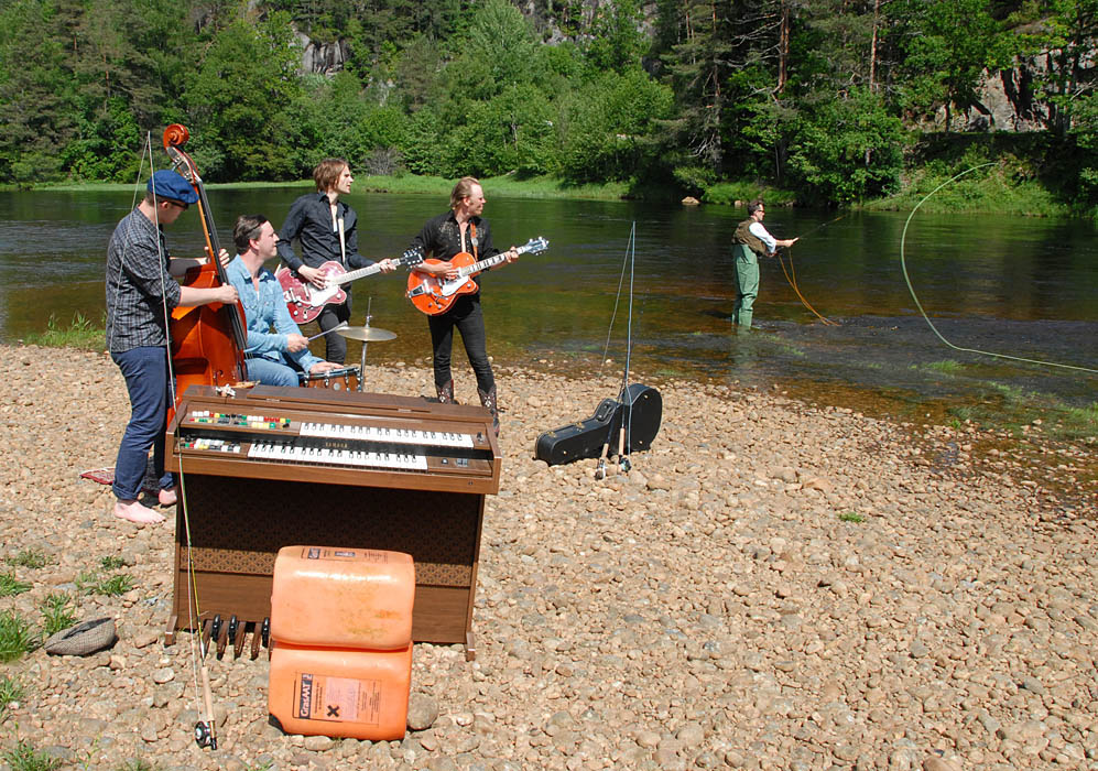 Uten strøm - ingen lyd i orgelet, så Kjetil tok fluestanga i stedet.