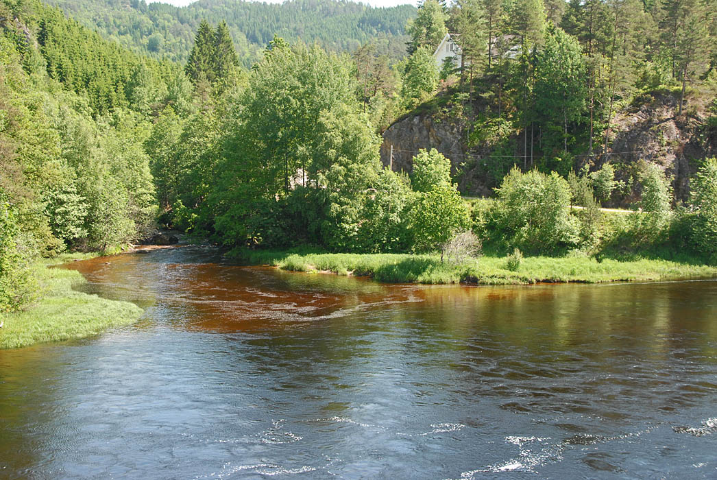 Elva som forsyner Finså klekkeri med vann, renner ut like nedenfor brua.