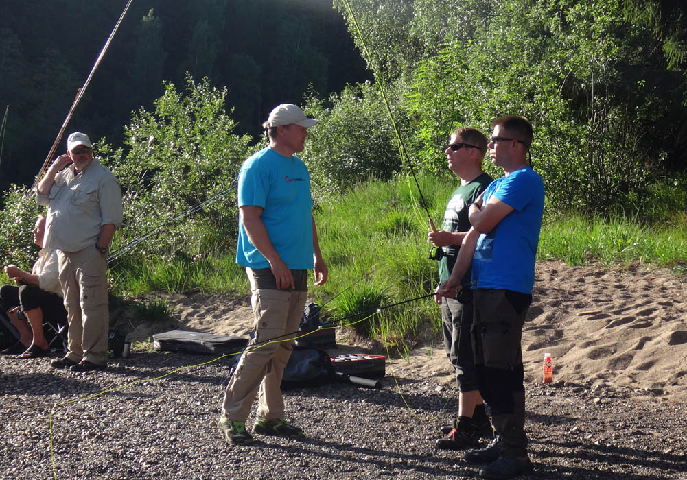 Besøk fra castingforbundet: Jarle Strandberg instruerer lokale fluekastere.