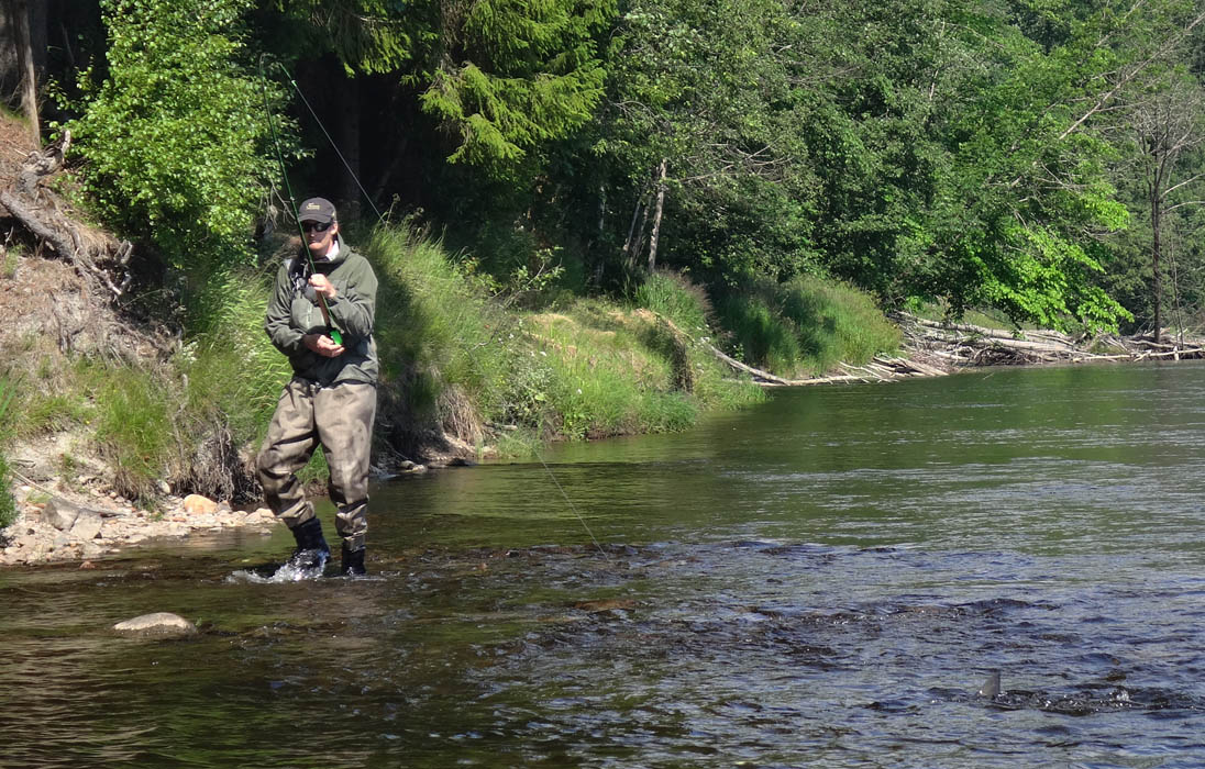 Guiden har gjort jobben: Rune Skullestad kjører mellomlaks i Oreskauen.