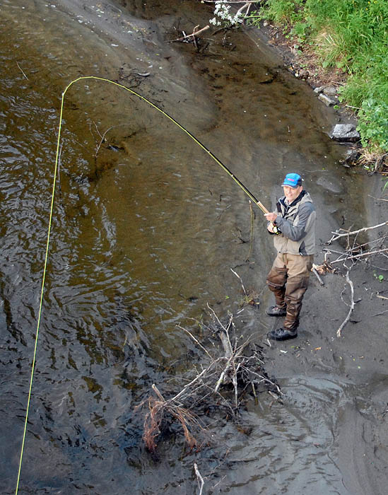 Jeg prøver å holde igjen, men laksen er allerede nedenfor brua.