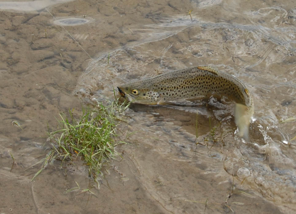 Ingen laks, men en liten sjøørret som må bite i gresset.