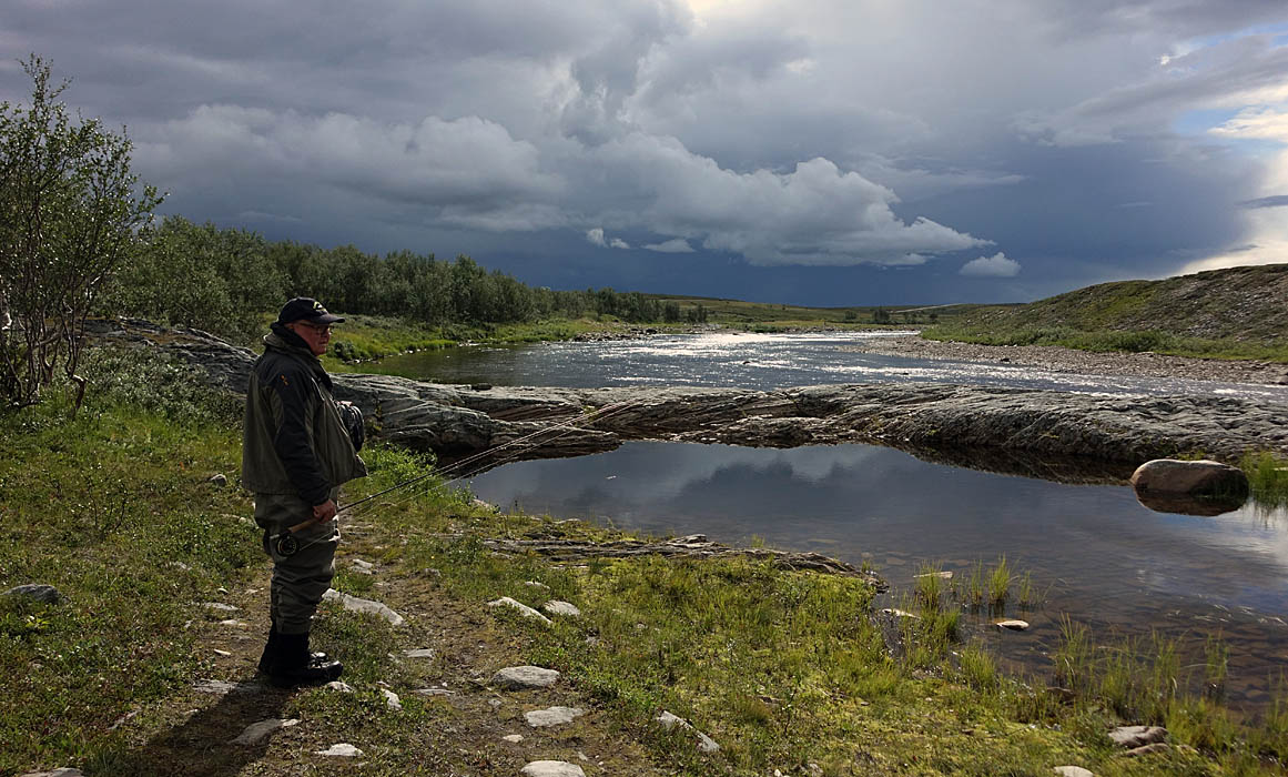Mørke skyer bygger seg opp. Snart skal det bøtte ned, og det er ingen ulempe for fisket!
