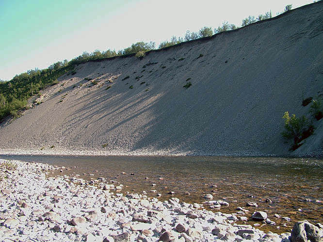 Stabburselva renner delvis gjennom morenelandskap og graver stadig grus.