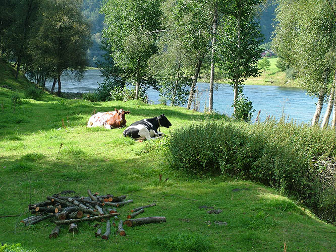 Noen steder må du passere kuer for å komme til fiskeplassene, men de er fredelige dyr.