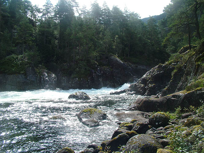 I Skotihølen samler fisken krefter før den går opp fossen og gir seg i kast med Juvet.