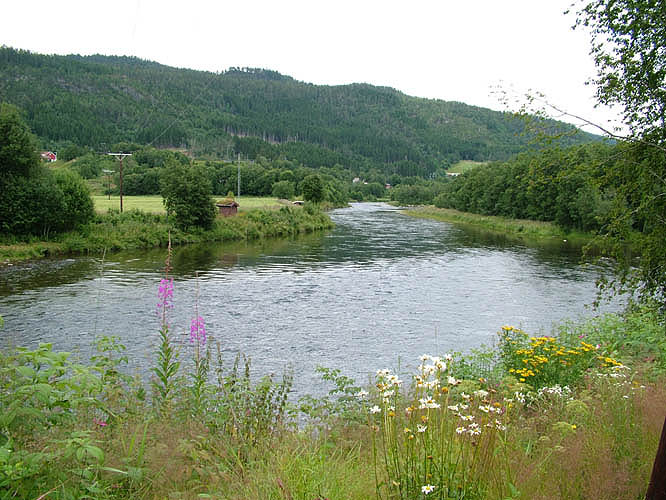 Utsikt oppover fra hengebrua ved Øvre Sæter.