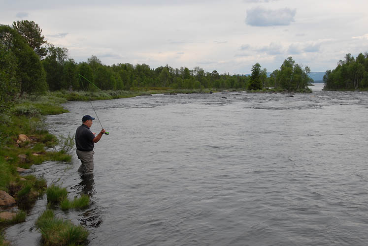 Bjarne fisker av den nederste hølen før stryket ned til Tisleifjorden.