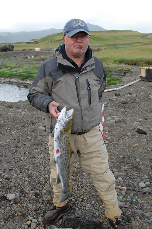 Såret: Sjøørreten (3,3 kg) er egentlig for stor til bli avlivet, men siden den har dype